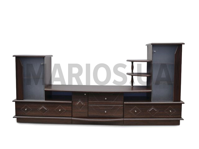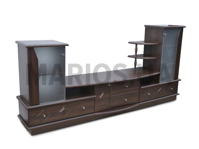 Сайдборд C060 - это отличная подставка под телевизор, в которой дополнительно может храниться масса полезных мелких вещей, при этом украшая Ваш интерьер, дополняя своей элегантностью и богатым цветом "орех темный". Такой предмет мебели отличается своей практичностью и оригинальным дизайном. Изделие состоит из двух больших и двух маленьких ящиков, полки под телевизор, двух открытых декоративных полок и пяти полок под стеклом. Сайдборд декорирован резным узором и красивыми круглыми ручками. К тому же сверху шкафчиков будут отлично смотреться роскошные комнатные цветы.Это качественная модель, изготовленная из натуральных экологически чистых материалов, поэтому она прослужит Вам не одно десятилетие. Материалы: каркас - ламинированная ДСП; фасад - МДФ; пленка ПВХ; упаковка - гофрокартон; стекло сатин в коробах из ДСП; складская программа. <h4>Размеры тумбы:</h4><table border="1" cellpadding="1" cellspacing="1" style="width:400px"><tbody><tr><td style="text-align:center">Ширина, см</td><td style="text-align:center">Глубина, см</td><td style="text-align:center">Высота, см<tr><td style="text-align:center">261</td><td style="text-align:center">51</td><td style="text-align:center">126