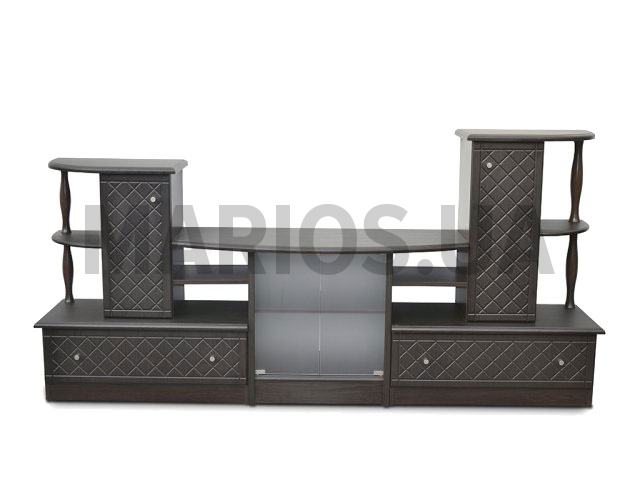 Сайдборд C061 - это прекрасная, очень стильная модель, выполненная в цвете венге южный, которая очарует Вас с первого взгляда! Такой предмет отличается своей практичностью и уникальным дизайном. Изделие состоит из двух вместительных ящиков, полки под телевизор, двух полок под стеклом и нескольких закрытых полок под деревянными дверцами, декорированные оригинальными круглыми ручками и резным узором под сетку. Плюс к этому, сверху сайдборда прекрасно будут смотреться комнатные цветы.Это эксклюзивная модель, отличного качества, которая украсит не только Ваш интерьер, но и Вашу жизнь в целом. Материалы: каркас - ламинированная ДСП; фасад - МДФ; пленка ПВХ; упаковка - гофрокартон; стекло сатин в коробах из ДСП; складская программа. <h4>Размеры тумбы:</h4><table border="1" cellpadding="1" cellspacing="1" style="width:400px"><tbody><tr><td style="text-align:center">Ширина, см</td><td style="text-align:center">Глубина, см</td><td style="text-align:center">Высота, см<tr><td style="text-align:center">240</td><td style="text-align:center">51</td><td style="text-align:center">116