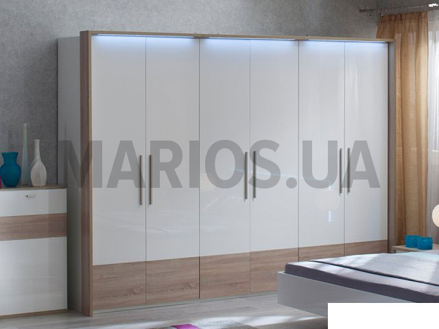 66.90см x 350.00см x 222.90см Вес 0.00кг Характеристики шкафа Количество дверей 6 дверей (ЛДСП) Оснащение 8 полок, 3 трубы для тремпелей Форма шкафа линейный Шестидверный шкаф Верона Размер: Ширина: 350 см Высота: 222.9 см Глубина: 66.9 см Цвет: дуб сонома. Цвет фасада: белый (Кроношпан). Фурнитура: Турция. Материал: ДСП ламинированное.