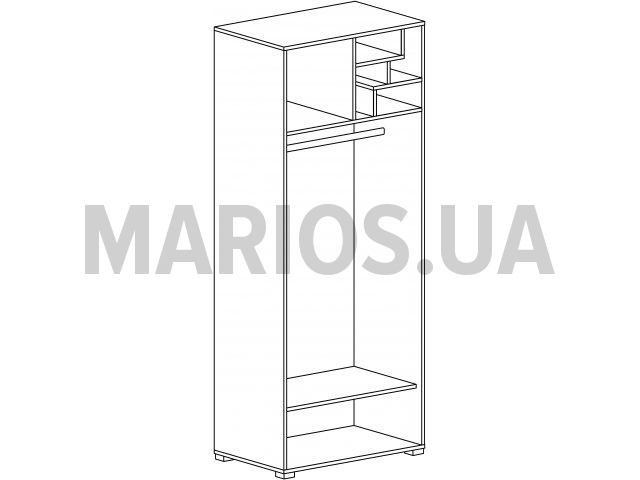 80.00см x 52.00см x 197.00см Характеристики мебели Материал ДСП 16 мм Шкаф 3-х дверный Labirint 2. Наполнение: штанга, полки. На дверях установлен механизм плавного закрывания, на ящиках - роликовые направляющие. Материал: ДСП 16 мм.