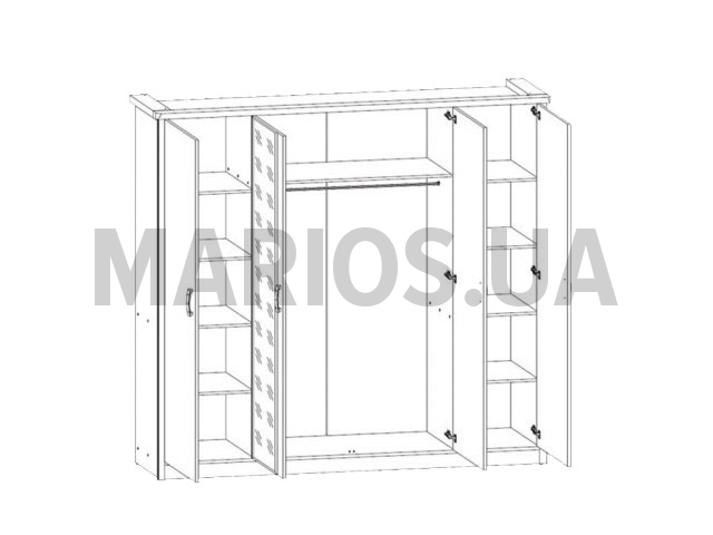 63.50см x 205.50см x 202.50см Характеристики мебели Материал ДСП. Шкаф 4d Сон Элемент модульной системы Сон. Доступный цвет: орех экко. Материал: ДСП. Размеры: (Ш/В/Г) - 205.5/202.5/63.5 см.