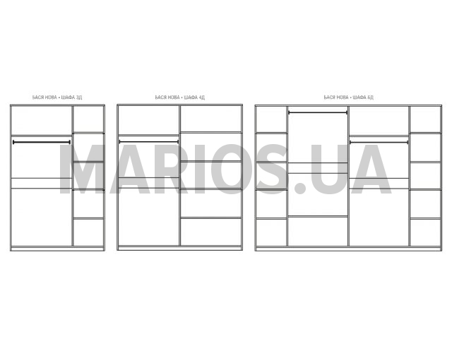 272.00см x 60.00см x 212.00см Характеристики мебели Материал ДСП ламинированное 18 мм Шкаф Бася новая (Нейла) 6Д Элемент спального гарнитура Бася новая (Нейла). Возможно изготовление в таких цветовых вариантах: Цвет фасада - ДСП белый лак Цвет корпуса - ДСП черный Шестидверный гардеробный шкаф с местом для верхней одежды, горизонтальными полками и двумя зеркалами прямоугольной формы.