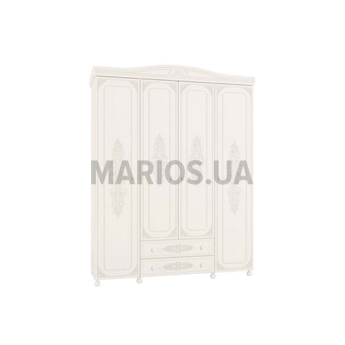 173.00см x 56.00см x 222.00см Характеристики шкафа Количество дверей четыре Материал корпуса ДСП ламинированное Материал фасада МДФ Оснащение 9 полок, два ящика, две штанги Шкаф четырехдверный с зеркалом АС-28 Ассоль. Материал фасада: МДФ (фирменная текстура 3D). Материал корпуса: ДСП ламинированное 18 мм. Ручки и ножки – фигурные. Наполнение: полки, выдвижнын ящики, две штанги. Цвет: белое дерево.