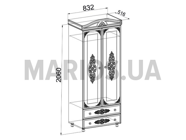 51.60см x 83.20см x 210.00см Характеристики мебели Материал ДСП, МДФ, ПВХ Шкаф двухдверный АС-02 Ассоль – это практичный гардероб для детских вещей. Он, прежде всего, отличается своей вместительностью. Так, изделие оснащено карнизом для тремпелей и двумя выдвижными ящиками, позволяющими разложить каждую вещь в отведенную ей секцию. Техника объемного узора делает шкаф эксклюзивным и оригинальным. Размеры: ширина: 83, 2 см;высота: 210 см;глубина: 51, 6 см. Материалы: модули изготовлены из ДСП 16 мм;применяются МДФ фасады;торцы деталей обклеиваются ПВХ-кромкой. Особенностью является применение технологии объемного нанесения узора. Ручки – фигурные. Вы также можете приобрести полноценную систему Ассоль, в которой скомбинированы различные элементы интерьера.