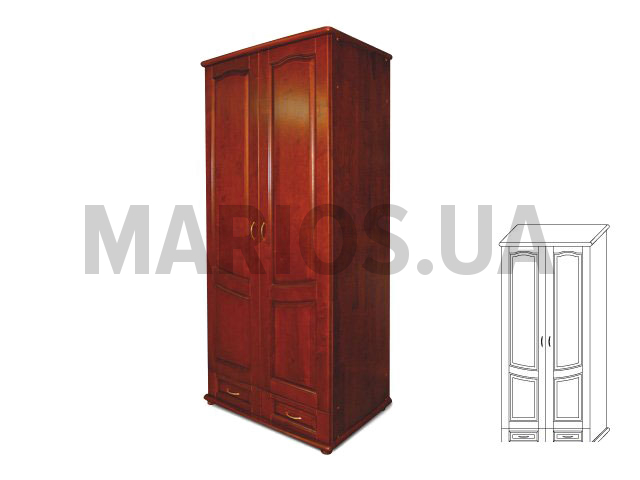 Характеристика шкафа Шкаф для одежды двустворчатый изготовлен из экологически чистого массива ольхи и дуба. Склейка дерева осуществляется клеем Jovat (Германия). Класс влагостойкости D-4 (клеевое соединение не боится влаги).