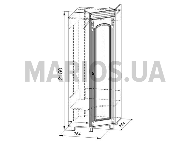 Шкаф ЭМ-1 Элизабет имеет очень необычный дизайн. Отлично разместится в углу комнаты или коридора. Купив это шкаф, Вы получите не только оригинальное место для хранения вещей, но и сэкономите жилое пространство. Шкаф однодверный со штангой и нижней полкой. Особенность модульной системы Элизабет: применяются регулируемые опоры, которые позволяют компенсировать неровности пола.