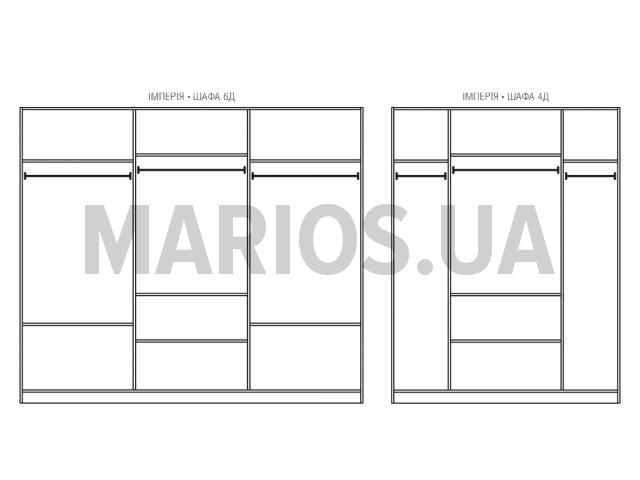 180.00см x 65.00см x 238.00см Характеристики мебели Материал ДСП Шкаф Империя 4Д Элемент спального гарнитура Империя <div>Спальня может быть изготовлена в таких цветовых вариантах: