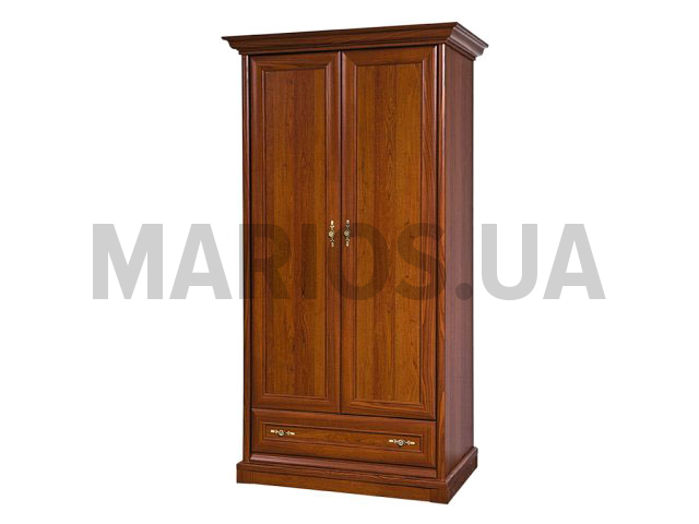 Двухдверный гардеробный шкаф со штангой для верхней одежды и выдвижным ящиком. Резные цоколи и утонченная фурнитура в цвете латунь. Из элементов модульной системы можно укомплектовать прихожую, спальню, гостиную и кабинет.