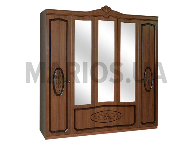 0.00см x 59.00см x 233.00см Характеристики мебели Материал ДСП, МДФ Шкаф Катрин 5Д Элемент спального гарнитура Катрин. Цвет фасада - МДФ орех патина Цвет корпуса - ДСП орех