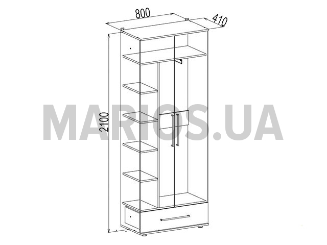 Шкаф КМ-01 - модуль системы мебели для жилой комнаты Карина производства отечественной фабрики Компасс. Шкаф двухдверный состоит из двух секций: секция с четырьмя полками, а также секция со штангой и общей верхней полкой. Также имеется большой вместительный нижний ящик. В этом, на первый взгляд, небольшом шкафу найдется место для всех Ваших вещей.