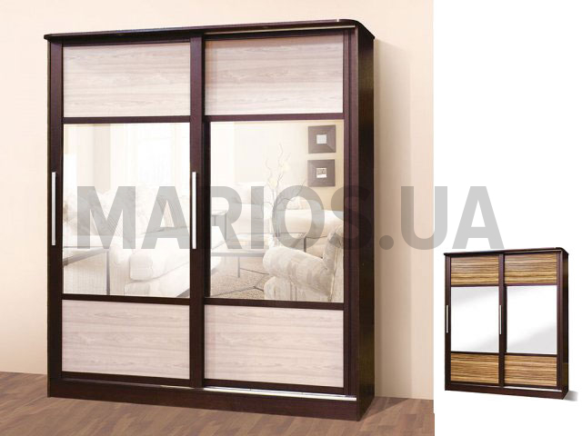 200.00см x 63.00см x 230.00см Характеристики мебели МатериалДСП, зеркало Шкаф-купе Монтре 2Д Возможно изготовление в таких цветовых вариантах:Цвет корпуса - ДСП венге, старый дубЦвет фасада - ДСП темный венге/ груша, темный венге/ макасар, старый дуб/ макасар, старый дуб/ зебраноЗеркало на каждой двери прямоугольной формы, удобные ручки.