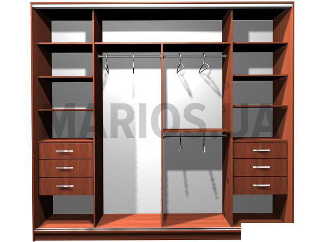 60.00см x 260.00см x 240.00см Вес0.00кг Характеристики шкафа Количество дверей4Материал корпусаДСП 16 мм, кромка ПВХ 0,5 и 2 мм, направляющие телескопические Оснащение11 полок, 6 ящиков, 4 двери из ДСПФорма шкафалинейная Шкаф-купе Ника-15 260х60х240 ДСП - это вместительный многофункциональный шкаф, который состоит из четырех секций. Две секции крайняя слева и крайняя справа комбинированные и состоят из полочек и ящиков, а две средние - это отделения для тремпелей одна секция большая и две маленькие. Используемые материалы: ламинированное ДСП (16мм), кромка ПВХ (2 и 0,5мм), направляющие телескопические. Раздвижная система ADS.Размеры шкафа-купе Ника 15 Высота, см Ширина, см Глубина, см240 260 60 Цена указана за <em>корпус шкафа в стандартной цветовой гамме с четырьмя дверями </em>из ДСП. Стоимость изготовления шкафа в нестандартной цветовой гамме оплачивается дополнительно.