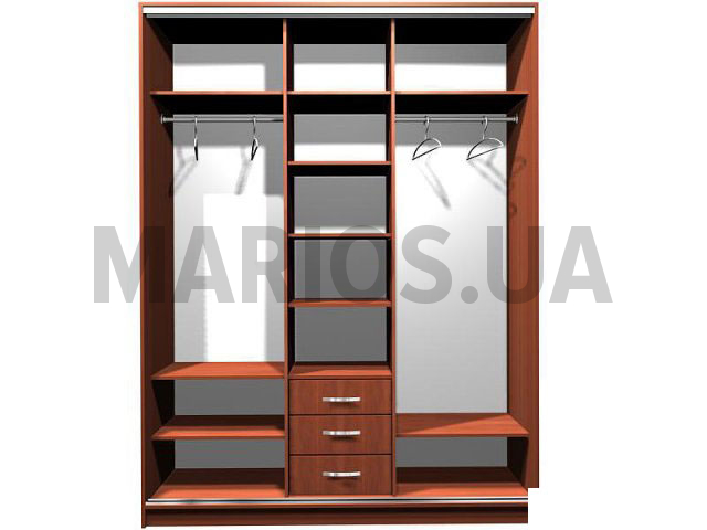 45.00см x 180.00см x 240.00см Характеристики шкафа Количество дверей3 Материал корпусаДСП 16 мм, кромка ПВХ 0,5 и 2 мм, направляющие телескопические Оснащение10 полок, 3 ящика, 3 двери с пескоструем Форма шкафалинейная Шкаф-купе Ника-5 180х45х240 с пескоструем - многофункциональный шкаф, состоящий из трех секций. Первая секция шкафа состоит из отделения с двумя полочками и секцией для тремпелей, вторая секция оборудована полочками и тремя ящиками, а третья секция тоже комбинированная и состоит из большого отделения для тремпелей и одной полочки.Используемые материалы: ламинированное ДСП (16мм), кромка ПВХ (2 и 0,5мм), направляющие телескопические.Раздвижная система ADS. Размеры шкафа-купе Ника 5 Высота, см Ширина, см Глубина, см 240 180 45 Цена указана за корпус шкафа в стандартной цветовой гамме с тремя дверями с пескоструем. Стоимость изготовления шкафа в нестандартной цветовой гамме оплачивается дополнительно.