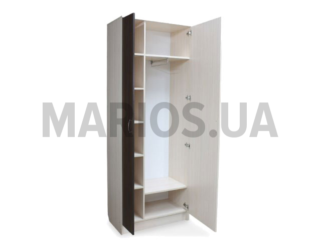 Шкаф Ника 50/2 - это двухдверная модель шкафа. Левая сторона шкафа - открытые полки в количестве шести штук, правая - штанга для висящей одежды, полка в верхней и нижней части шкафа. Материалом изготовления является ламинированный ДСП (16мм). Вы можете заказать любой из стандартных цветов. Размеры Комплекс-1 шкаф Глубина, см Ширина, см Высота, см 44 80 200