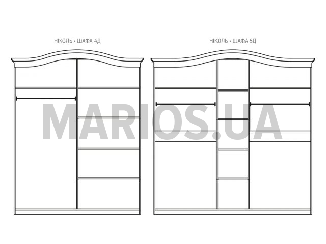 223.00см x 58.00см x 230.00см Характеристики мебели Материал ДСП, МДФ Шкаф Николь патина 5Д Элемент спального гарнитура Николь патина. Возможно изготовление в таких цветовых вариантах: Цвет фасада - МДФ белое дерево, патина Цвет корпуса - ДСП белое дерево