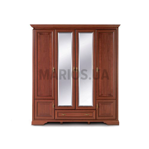 Шкаф NSZF 4d1s- элемент модульной системы Стилиус производства фабрики Гербор (Gerbor), Украина. Четырехдверный, декорированный зеркалами шкаф украсит Вашу спальню и придаст ей особого шарма, потому что античный стиль - это роскош, шик и элегантность. Шкаф имеет дополнительно две нижние боковые дверки и вместительный ящик по центру фасада. Патинированные ручки, плавные изгибы ножек, богато украшенный карниз, фасад придают утонченности интерьеру. Классическая мебель всегда в моде, поэтому такой шкаф прослужит Вам долго. При правильном сочетании модулей системы Стилиус Вы создадите неповторимый интерьер в Вашей спальне. Мебель выполнена в цвете "черешня античная", изготовлена из экологически чистых и высококачественных материалов. Используют: каркас - ДСП (16мм);фасад - МДФ. Размеры шкафа:Ширина, см Глубина, см Высота, см 197,0 61,5 221,0