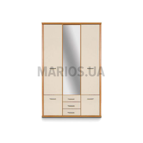 Элементом модульной системы Том производства фабрики Гербор (Gerbor), Украина, является шкаф платяной 3d Том. Такая модель хорошо будет смотреться в спальне, в гостиной, возможно и в столовой комнате. Шкаф декорирован зеркалом в центре фасада, имеет три выдвижных ящика, расположенных ниже зеркала и двумя боковыми дополнительными дверками.