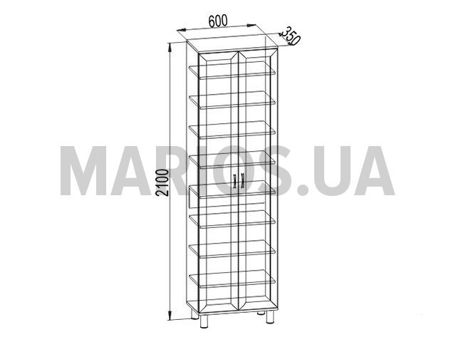 Шкаф под обувь УМ-11 Уют - находка для каждой женщины и просто необходимоя мебель для семьи. Отдельный шкаф под обувь - это удобно, практично и красиво! Внутри двухдверного шкафа есть целых девять полок! Шкаф сделан из ДСП 16мм вертикальной текстуры немецкого концерна "Кроно Украина" . На фасадах - накладки МДФ профиля. Ручки и ножки цвета "хром". Четыре варианта цвета мебели Уют: ольхаяблонякленорех Размеры шкафа под обувь УМ-11 Уют Ширина, см Глубина, см Высота, см 60,0 35,0 210,0