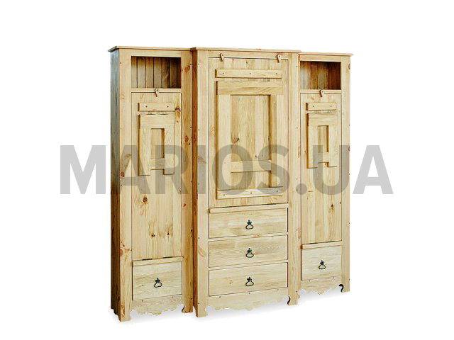 Шкаф изготовлен из древесины сосны. Мебель изготовленная из этой древесины, имеет роскошный внешний вид, благодаря рисунку, который образует матушка природа и красивым песочным оттенкам. С такой мебелью Ваш дом будет выглядеть по особенному и внесет в интерьер нотку древности и старины.