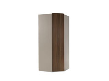 Полки шкафа хоть и имеют треугольную форму, но достаточно вместительные. Также в шкафу имеется штанга для висящей одежды. Строгий дизайн и прямые линии придадут интерьеру комнаты изысканности и неповторимости.
