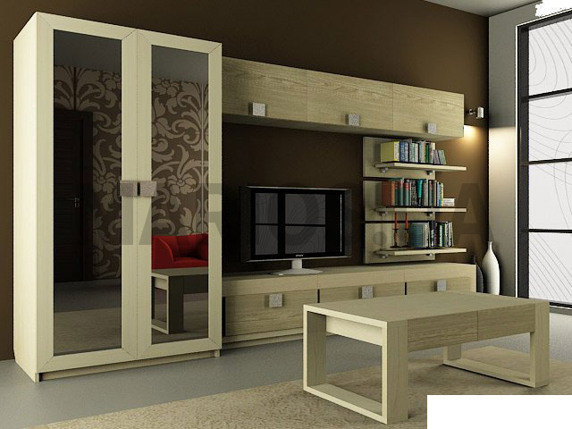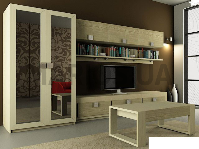 Система Александрия-1 решит проблему меблировки Вашей гостиной. В состав системы входит: шкаф двухдверный АМ-1 с зеркалами, который имеет верхнюю полку и штангу;тумба АМ-2, с тремы выдвижными отделениями;три навесных шкафа АМ-3;журнальный стол АМ-4;три открытых полки АМ-5. Материал - высококачественная ДСП 16мм и 25 мм немецкого концерна "Кроно Украина". Материал фасадов - МДФ. Торцы деталей оклеены ПВХ-кромкой фирмы MAAG. Стекло цвета сатин-бронза, ручки - хром. Доступны следующие варианты цветового исполнения: цвет корпуса "клен ванкувер", на фасадах накладки МДФ в цвете "карпатская ель";цвет корпуса "венге", на фасадах накладки МДФ в цвете "черный орех". Размеры шкафа АМ-1 с зеркалом Александрия Ширина, см Глубина, см Высота, см 90,0 54,8 200,0Размеры тумбы АМ-2 Александрия Ширина, см Глубина, см Высота, см 210 44 42Размеры навесного шкафа АМ-3 Александрия Ширина, см Глубина, см Высота, см 70 31,4 34,8Размеры журнального стола АМ-4 Александрия Ширина, см Длина, см Высота, см 54,8 95,2 42Размеры полки АМ-5 Александрия Длина, см Высота, см 70 30