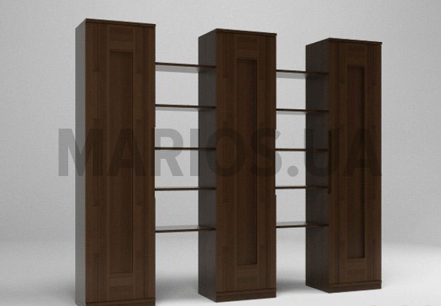 Характеристики мебели Материалмебельный щит из бука Система для гостиной Мелодия-6.Включает в себя:Пенал высокий с глухим фасадом Мелодия (3шт).Размеры:длина: 49,6 см;глубина: 38,2 см;высота: 202 см.Полка наружная для этажерок (10 шт).Размеры:длина: 49,2 см;глубина: 34,3 см;высота: 1,8 см.
