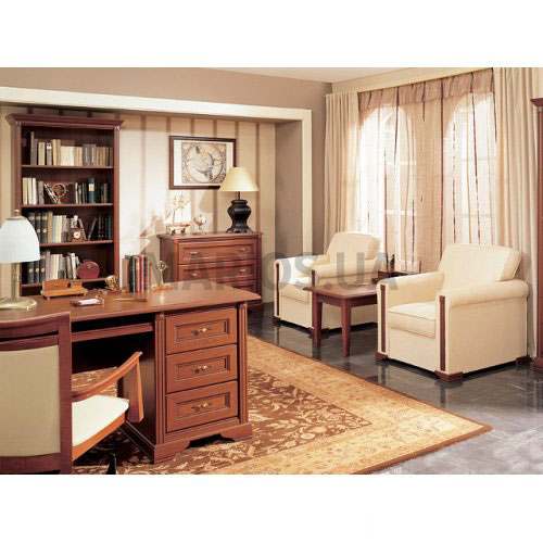 Система Стилиус 1 - роскошная и комфортная мебель, которая украсит Ваш кабинет. Богатые карнизы, патинированные ручки, плавные изгибы ножек придают мебели особого шарма. Модульная система производства Гербор (Gerbor), Украина - это отличный выбор, так как мебель изготовлена из высококачественных и экологически чистых материалов. Используются: каркас ДСП (16 мм);фасад МДФ. Мебель выполнена в благородном цвете "черешня античная" В состав системы входит комод NKOM 3s Стилиус, стеллаж NREG 100 Стилиус, стол письменный NBIU 170 Стилиус. Размеры комода NKOM 3s Стилиус Ширина, см Глубина, см Высота, см 103,0 44,5 86,5 Размеры стеллажа NREG100 Стилиус Ширина, см Глубина, см Высота, см 97,5 39,0 201,5Размеры стола письменного NBIU 170 Стилиус Ширина, см Длина, см Высота, см 75,0 170,0 77,5