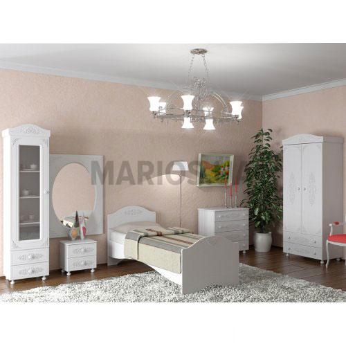 Характеристики мебели Материал ДСП, МДФ Спальный гарнитур Ассоль-1. Включает в себя: Кровать АС-09 (спальное место 80х200 см); Тумба прикроватная АС-04; Пенал со секлом АС-01; Шкаф АС-02; Комод АС-05; Зеркало АС-07. Размеры кровати АС-09: ширина - 85 см; длина - 204 см; высота - 90 см. Размеры тумбы прикроватной АС-04: ширина - 45 см; глубина - 35 см; высота - 45 см. Размеры пенала со стеклом АС-01: ширина - 53 см; глубина - 40 см; высота - 206 см. Размеры шкафа АС-02: ширина - 83 см; глубина - 50 см; высота - 206 см. Размеры комода АС-05: ширина - 80 см; глубина - 50 см; высота - 80 см. Размеры зеркала АС-07: ширина - 80 см; глубина - 32 см; высота - 110 см. Ручки – фигурные. Материал фасадов: фирменная текстура 3D. Материал корпуса: ДСП ламинированное 18 мм. Цвет: белый.