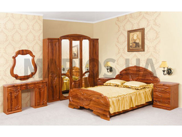 Характеристики мебели МатериалДСП Спальня ЭмилияВ состав комплекта входит: Двуспальная кровать 160х200 - 210х184х112 см Комод - 109х47х90 см Прикроватная тумба - 53х44х66 см Шкаф - 221х61х234 Зеркало - 94х84 см Туалетный столик - 123х44х80 см Матрас к двуспальной кровати можно купитьmatrasi-ortop/">здесьЦвет фасада - ДСП старый дубЦвет корпуса - ДСП старый дуб