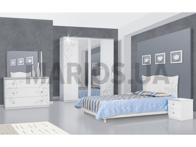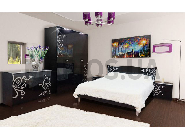Характеристики мебели Материал ДСП Спальня Фелиция новая 4Д В состав комплекта входит: Комод 120х48х81 см Шкаф 4Д 178х69х217 см Зеркало 90х60 см Кровать двуспальная 160х200 178х206х93,5 см Тумба прикроватная 51,5х38х48 см Цвет фасада - ДСП белый/ черный Цвет корпуса - ДСП белый лак/ черный лак Элемент спального гарнитура Фелиция новая.
