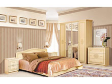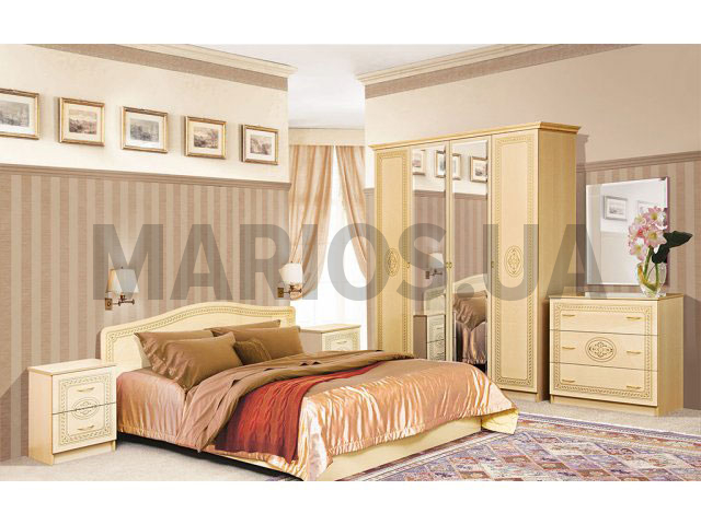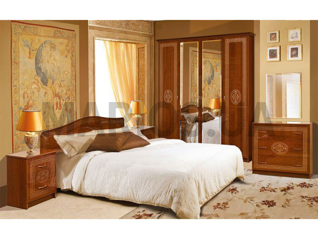 Характеристики мебели Материал ДСП Спальня Флоренция 4Д В комплект Флоренция входит: Комод 89х43х86 см Тумба прикроватная 45,6х35,6х60,5 см Кровать двуспальная 160х200 185х208х92 см Шкаф 4Д 187х64х224 см Зеркало 85х70 см Цвет фасада - ДСП венге светлый лак/ каштан лак Цвет корпуса - ДСП венге светлый лак/ каштан лак