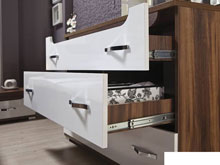 Материалом корпуса и фасада спального гарнитура Фрида 2 является ламинированная ДСП.