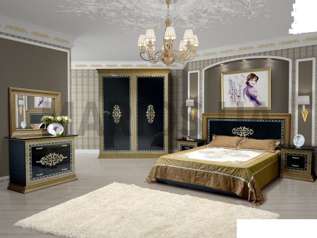 Характеристики мебели Материал ДСП Спальня София Люкс 4Д В состав комплекта входит: Двуспальная кровать 160х200 - 206,5х168х118 смКомод - 111х48,5х87 смПрикроватная тумба 2шт - 61,5х40х57,5 смШкаф 6Д - 184х62х221Зеркало - 88х2,3х104 см Матрас к двуспальной кровати можно купить здесь Цвет фасада - ДСП черный/ белый, лак, художественная печать Цвет корпуса - ДСП черный/ белый