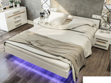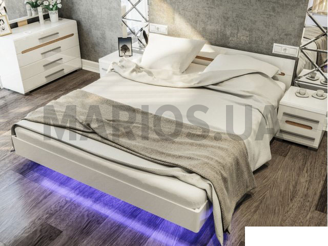 Характеристики мебели Материал ДСП, МДФ Спальный гарнитур Бьянко Цвет: белый В комплект входит: Двуспальная кровать 160х200 (цена без учета стоимости каркаса и матраса)Две прикроватные тумбыГардеробный шкаф 3ДКомодЗеркало Материалы: Фасад - МДФКорпус - ДСП