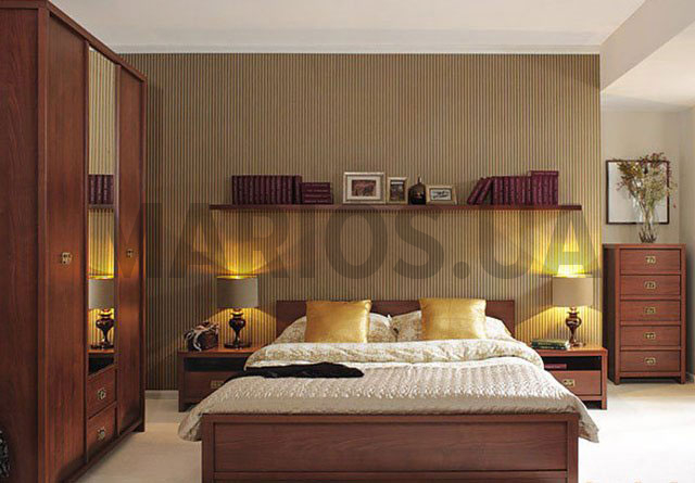 Характеристики мебели Материал ДСП, МДФ. Спальный гарнитур Каспиан Классик Доступный цвет: вишня примавера светлая. Материал корпуса: ДСП. Материал фасада: МДФ. Состоит из: Шкаф платяной SZF3D2S Размеры: (Ш/В/Г) - 154/208.5/55.5 см. Кровать LOZ 160 (каркас) Размеры: (Ш/В/Г) - 168/36-70.5/207.5 см. Тумба прикроватная KOM1S (2 шт) Размеры: (Ш/В/Г) - 51/40.5/40.5 см. Полка POL/151 (2 шт) Размеры: (Ш/В/Г) - 151/4/25 см. Комод KOM5S Размеры: (Ш/В/Г) - 56/109/40.5 см.