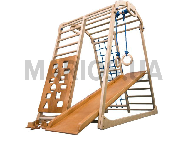 Спортивный комплекс для дома KindWoodPlus предназначен для детей возраста от 1 года до 5-7 лет. Конструкция создана с учетом всех физиологических особенностей развития детей такого возраста. Допустимая нагрузка – до 60 кг.