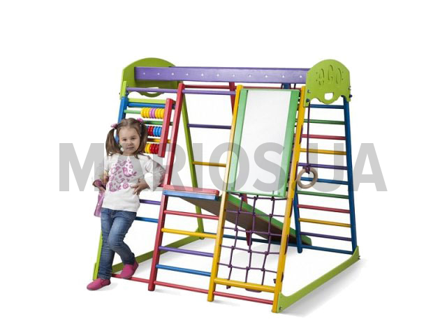130.00см x 120.00см x 130.00см Вес0.00кг Характеристики мебели Материалнатуральное дерево сосны и бука, веревка - полипропилен, кольца - пластик Спортивный уголок Юнга – компактный спортивный уголок, выдерживающий нагрузку до 40 кг. Такой спортивный уголок прекрасно дополнит обстановку детской комнаты без ущерба площади комнаты. Эта модель предназначена для физического развития Ваших детей. Продуманный дизайн уголка и устойчивая конструкция делает его безопасным для активных игр. Все детали обработаны и покрыты бесцветным лаком, используемая древесина тщательно высушена. Подойдет для дошкольников и детей младшего школьного возраста. Для установки уголка Вам не потребуется специальных креплений, а транспортировка не доставит трудностей. Компания-производитель предоставляет гарантию на 12 месяцев на свои товары. Товар соответствует ГОСТу и отвечает требованиям международной сертификации CE и TUV.В комплект входят такие спортивные элементы:Шведская стенка Гладиаторская сетка Рукоход Детская горка Доска с пазлами Кольца Лесенка Стол "цветной"<em>Мольберт и счеты в комплектацию не входят.</em>Характеристики спортивного уголка:Высота – 120 см Ширина- 100 см Длина 120 см Материал – натуральное дерево сосны и бука Допустимая нагрузка – до 40 кг Веревка – полипропилен Вес товара - 30 кг