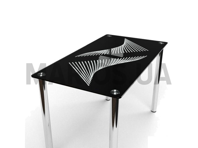 Стекло применяется в производстве столешницы. Она изготовлена из закаленного стекла толщиной 8мм. Такой материал достаточно прочный, его очень тяжело разбить, оно не царапается и не поддается перепадам температур и влаги. В качестве устойчивых опор используется металлическая хромированная труба диаметром 50мм. Сечитание металла и стекла, делают стол надежным и крепким. Поэтому прослужит Вам такой предмет мебели ни один десяток лет.