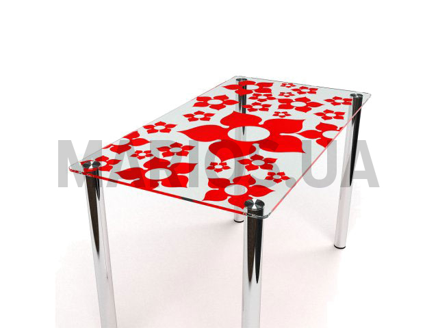 Неотъемлемый атрибут мебели интерьера современной кухни - яркий, стеклянный стол Цветение S-1.