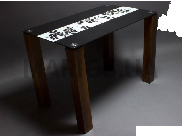 91.00см x 61.00см x 75.00см Характеристики мебели Материал Массив ольхи, закаленное стекло. Стеклянный стол Цветы рая черно-белый - это прямоугольный, обеденный стол, который отлично впишется в Ваш интерьер и будет радовать Вас и Ваших гостей. Такой стол можно поставить как на кухню, так и в гостиную, столовую. Он очень прочный, долговечный и совсем нетребовательный в уходе.