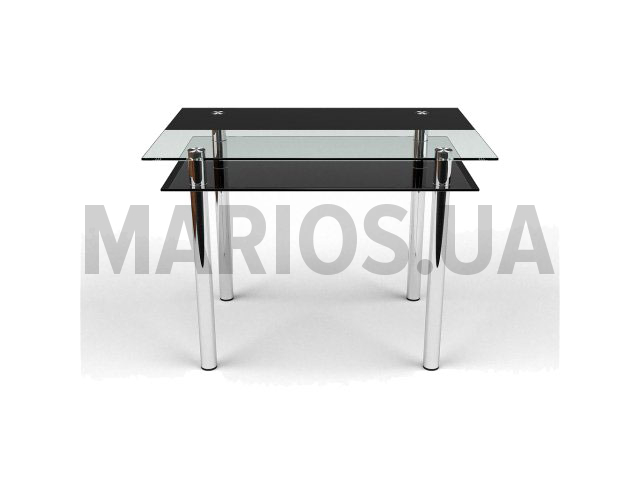 В производстве стола используется закаленное стекло толщиной 8мм - в основной полке, стекло толщиной 6мм - в дополнительной. В качестве устойчивых опор применяется металлическая хромированная труба диаметром 50мм.