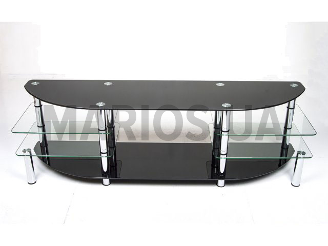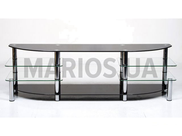 Столешница изготовлена из закаленного стекла толщиной 8мм, способного выдерживать нагрузку до 500кг. Дополнительные полки из стекла толщиной 6мм. В качестве устойчивых опор используется хромированная металлическая труба диаметром 50мм. Опоры крепятся к столешнице, благодаря использованию металлических пятаков.