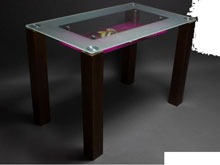 Изюминкой стола является крашенный рисунок на подвесной полке столешницы. Благодаря различным вариантам фотопечати для полки Вы можете подобрать рисунок по своему вкусу. Ножки стола придают ему устойчивости, а хромированное покрытие защищает конструкцию от механических повреждений и царапин.