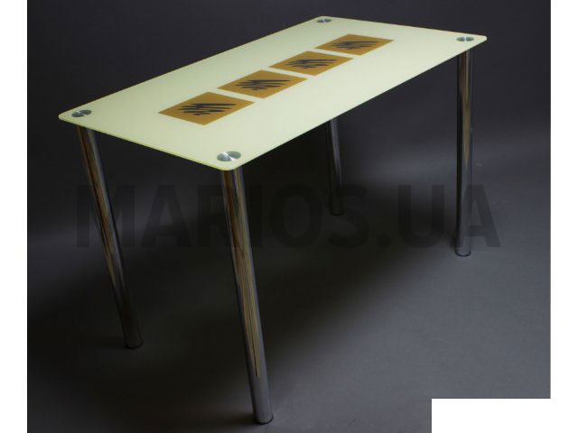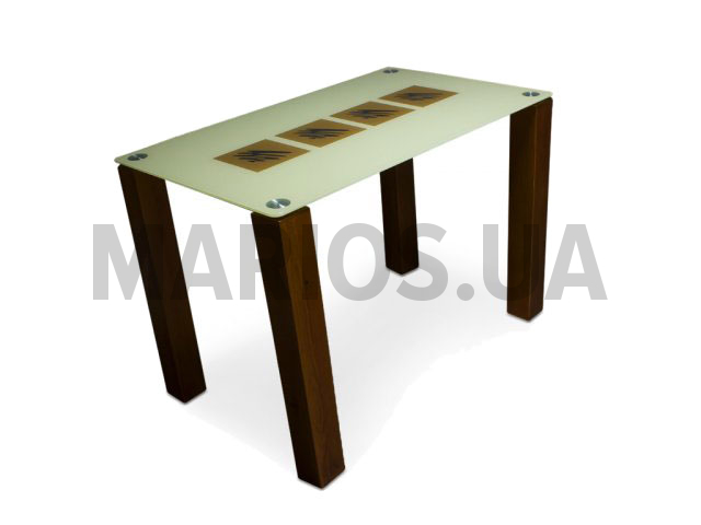 Изюминкой стола является крашенный рисунок столешницы, а прочные ножки придают устойчивости.