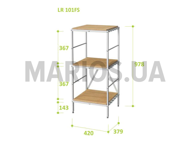 37.90см x 42.00см x 97.80см Характеристики мебели Материал алюминий, шпон Стеллаж Lira LR 101FS Характеристики: Материал каркаса: алюминий Материал полок: шпон дуба Количество полок: 3 Высота: 97.8 см Ширина: 42 см Глубина: 37.9 см Вес: 6.7 кг Максимальная нагрузка: 60 кг Цвет: под дерево Гарантия: 24 месяца