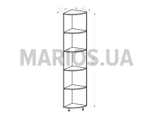 Стеллаж СтОМ-6.1 - высокий угловой стеллаж, который входит в состав мебельной системы для офисных помещений производства Компасс, Украина. Стеллаж состоит из четырех открытых полок. Материалы: ДПС 16 мм, ПВХ-кромка. Производитель предлагает четыре варианта цвета мебели: "ольха", "яблоня", "клен", "орех". Размеры стеллажа открытого СтОМ-6 Ширина, см Глубина, см Высота, см 35,0 35,0 198,6