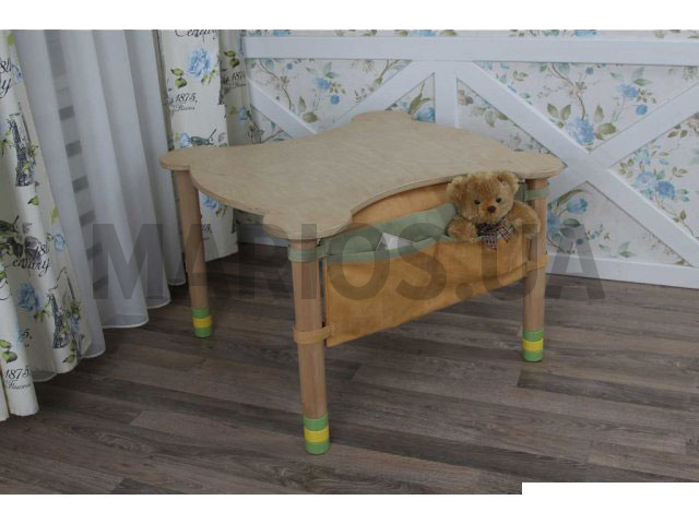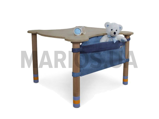 Еще одной особенностью обладает данный столик, производитель комплектует его боковым карманом для игрушек или канцелярии. Изготовлен он из прочной, качественной ткани.
