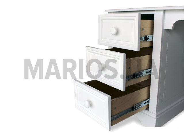 Стол вместительный, имеет просторную столешницу и оснащен тремя выдвижными ящиками. Красивые резные ножки придают модели изящности и неповторимости.