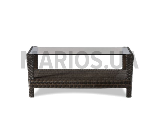 115.00см x 55.00см x 47.00см Характеристики мебели МатериалРотанг, алюминий Страна производительУкраина Стол кофейный DianaХарактеристики:Габариты: 115х55х47 смКаркас: алюминий.Материал: техноротанг.Ширина ротанга: 8 ммСтолешница: стекло - 8 мм, цвет - бронза.