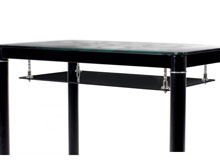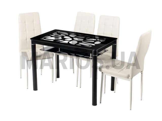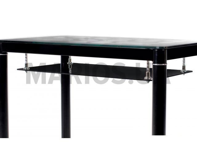 60.00см x 100.00см x 76.00см Характеристики мебели Материалстекло, металл Стол обеденный T-300-2 черныйХарактеристики:Ширина: 100 смГлубина: 60 смВысота: 76 смМатериал столешницы: стекло.Материал основания: крашенный металл.Вид: не раскладные.Особенность: черная столешница с узором, черная полка, черные ноги.